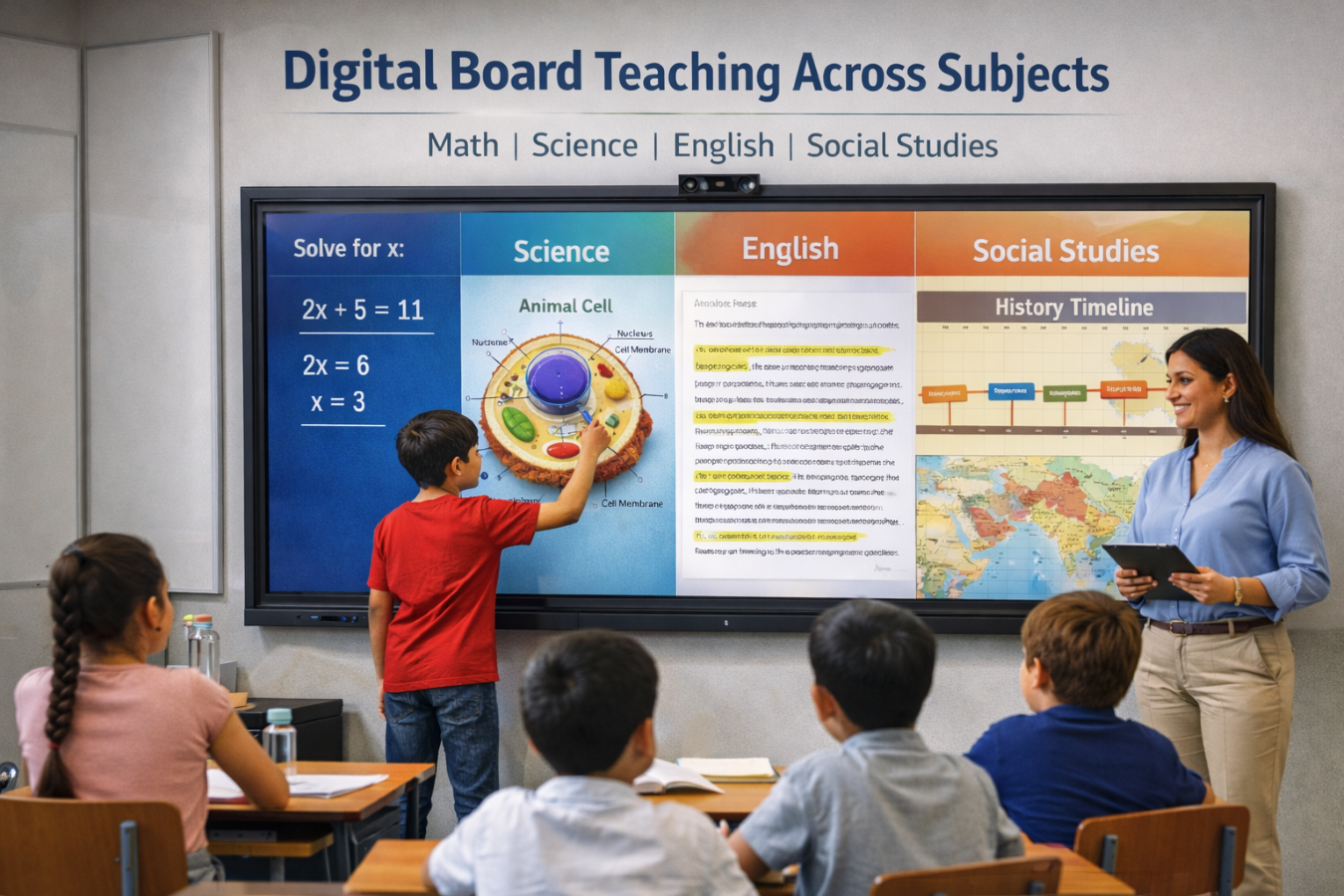 Every subject asks students to think in a different way. Math needs step-by-step logic. Science needs diagrams, labels, and process flow. English depends on close reading, language analysis, and response. Social studies works best with timelines, maps, comparisons, and evidence. That is why a digital board for the classroom should not be used in the same way in every period.