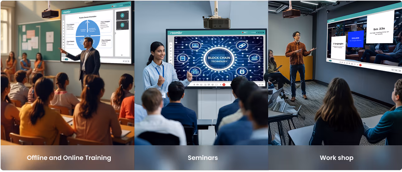 Roombr supports training, workshops, and professional learning with interactive digital solutions.