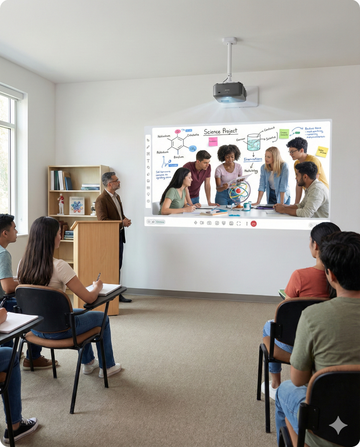 Imagine having a smart class setup with large interactive displays where students can come up, drag and drop elements, annotate, and participate in lessons more dynamically. It turns the traditional whiteboard into a powerful learning hub.